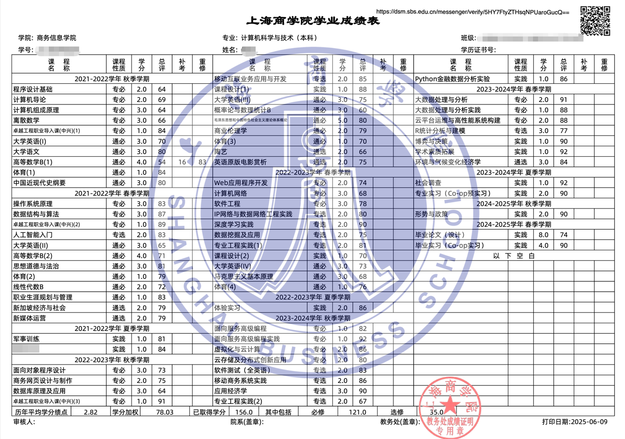 权威电子签章:电子成绩单 PDF 文件,加盖专用电子签章,可通过权威网站验证真实性。
