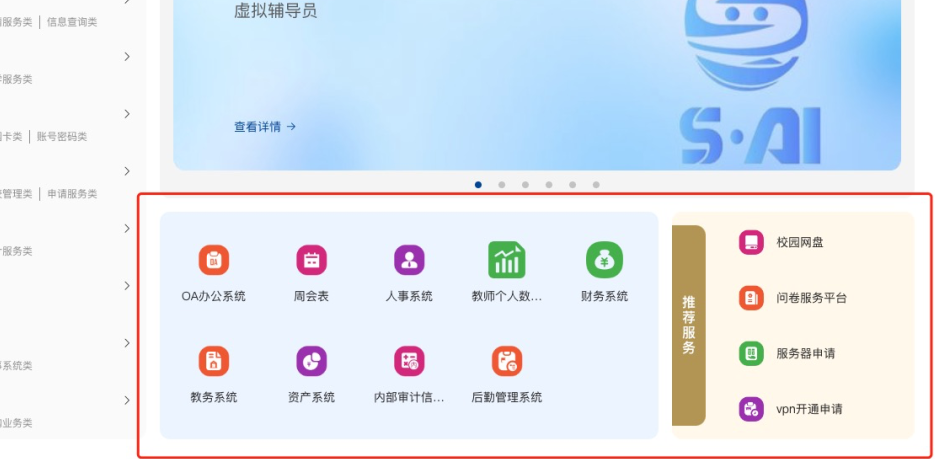 针对师生使用率高的应用等分别增设了热门工具、应用、服务一键直达入口。高频使用的系统和服务入口都汇聚于此,为师生节省寻找服务的时间。