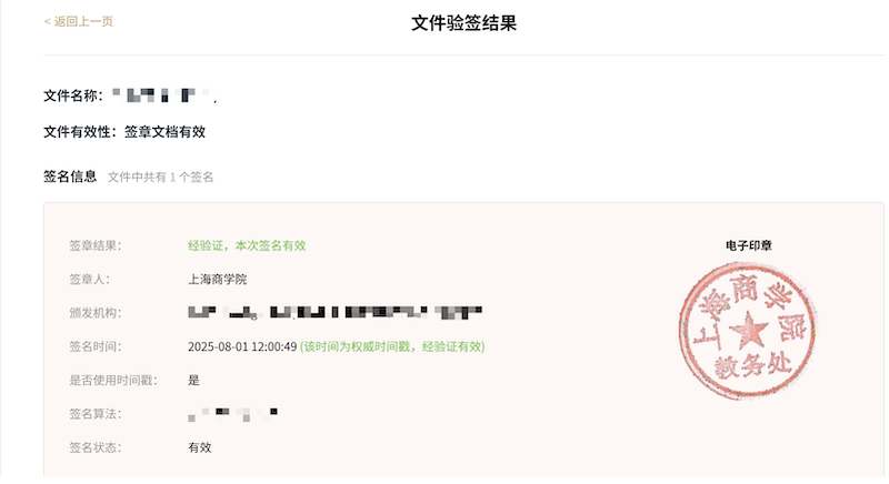 支持PDF格式下载及在线验证(可以在上海市民随申办、学信网校验真实性,入口与电子成绩单一致)。